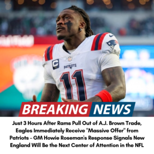 🚨 UPDATE: Just 3 hours after the Los Angeles Rams backed out, the A.J. Brown saga took a shocking turn—New England Patriots reportedly dropped a massive offer, but is this a bold masterstroke or a desperate gamble? With Howie Roseman staying strategically silent, the real question is: are the Philadelphia Eagles driving the price higher, or quietly setting up a twist that could shake the entire NFL?