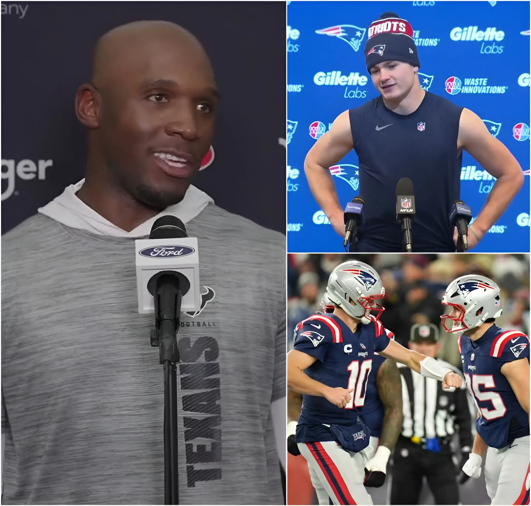 “‘We want New England!’ Texans head coach DeMeco Ryans declared bluntly after Houston defeated the Steelers in the Wild Card round, instantly sending shockwaves across the AFC.He claimed the Patriots would be the ‘easiest matchup’ for the Texans in the AFC Divisional round, even suggesting that New England’s current playoff experience is no longer intimidating.Ryans emphasized that the Texans fear neither history nor tradition, believing only in their speed and youth.Those comments quickly spread throughout the NFL ahead of the AFC Divisional clash set to take place at Gillette Stadium.In response, Patriots superstar Drake Maye simply smiled and delivered a single sentence.Yet that was more than enough to give Patriots fans goosebumps and ignite the atmosphere at Gillette before kickoff.”