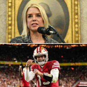 “🚨 “HE’S JUST A FOOTBALL PLAYER.” Pam Bondi’s Smug Dismissal EXPLODES in Her Face as Brock Purdy UNLEASHES a Calm, Razor-Sharp Clapback on Live TV — Turning Arrogant Belittlement into a Viral Lesson in Respect, Intelligence, and Quiet Power That Left the Entire Panel STUNNED and 49ers Nation CHEERING WILDLY!