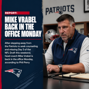 🚨 BREAKING: Mike Vrabel RETURNS TO New England Patriots OFFICE AFTER STEPPING AWAY FOR COUNSELING, MISSING DAY 3 OF THE NFL DRAFT — SOURCES SAY THE TEAM IS BRACING FOR A HIGH-EMOTION WEEK AS LEADERSHIP RESETS — Fans and insiders alike are watching closely, as Vrabel’s return could signal a turning point in the Patriots’ preparation and locker room energy..ll 👇👇👇